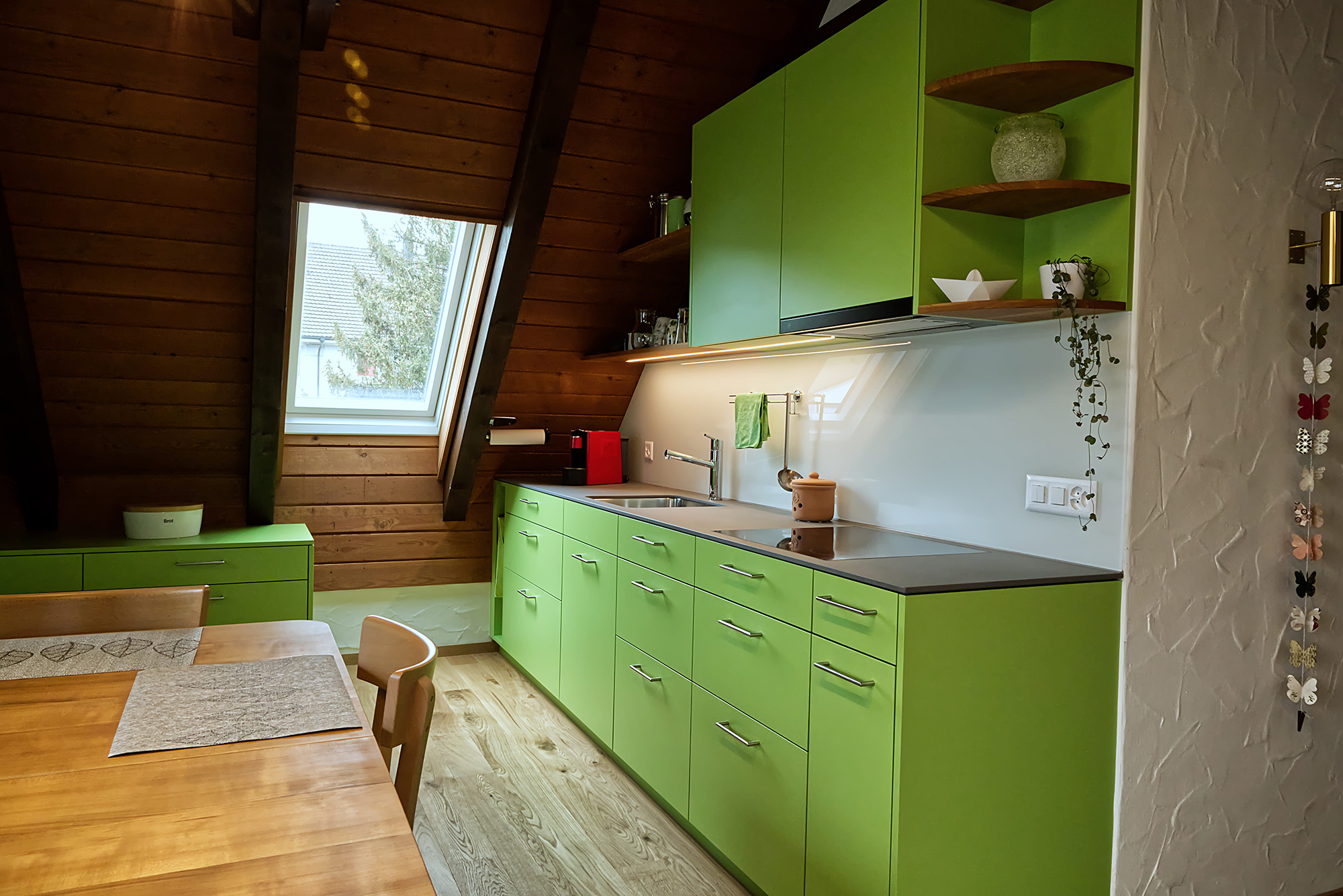 Ausserdem verfügen wir über eine Aussenwohngruppe (AWG), Dachwohnung mit offener Wohnküche und zwei Zimmern.
